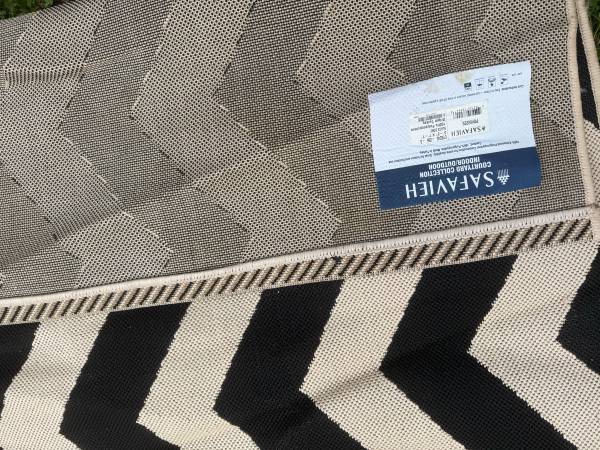 Safavieh Courtyard Collection Indoor/Outdoor 100% enhanced polypropylene. “Easy to clean, just sweep, vacuum or rinse off with a garden hose” Origin Turkey