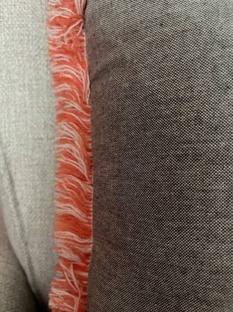 Llama pillow from Home Goods. Took off tags and placed on chair in a bedroom for a month before deciding that it doesn't match. Gray/coral with fringe. Measures 17" all the way around. Excellent...