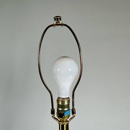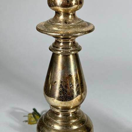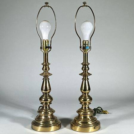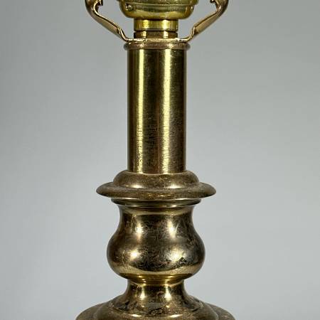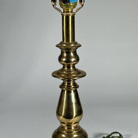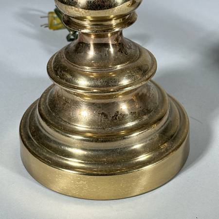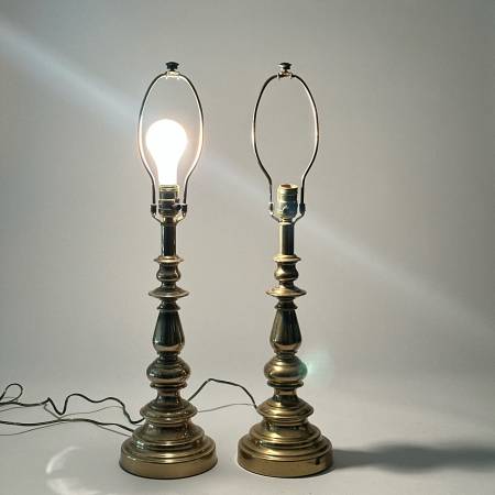 Pair of turned brass lamps. Both functional, as pictured. - h. 27.5 x dia. 6.75 in.