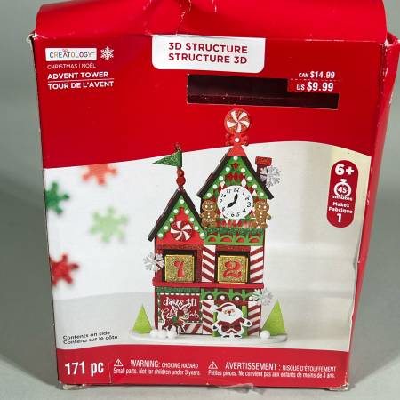 Including ornaments and 3d Advent Tower structure. New in box. - h. 8 x w. 7 x d. 2.5 in. (Box of Structure)