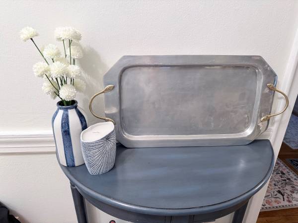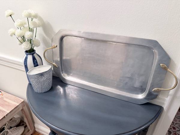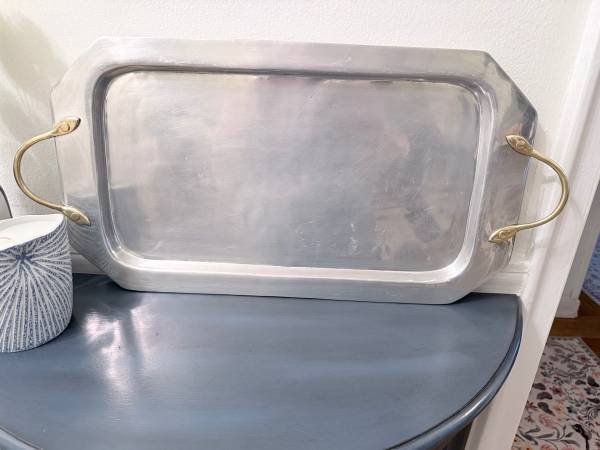 Vintage rectangle platter with brass handles. Perfect choice for all occasions, like hosting a dinner party.