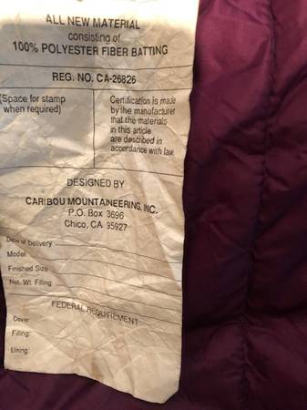 Caribou 78" x 30", sleeping bag, USA Made Maroon and Gray Mfr, Caribou Mountaineering, Inc All new material 100% polyester Fiber Batting NON Smoking No Pets