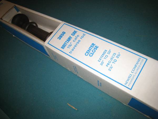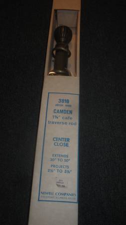 Still in original boxe Window Drapery / Traverse Rods by Newell Color Antique Brass 1 3/8" cafe 4 available never used Camden cafe 4 available Center close EXTENDS 30" to 50" PROJECTS 2-1/2" to...
