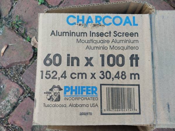 Top of the line Phifer aluminum insect screen, OEM roll of 60inch X 50ft, (box states 100ft roll but it is only 50ft). I used 1 sheet from this 50ft roll - that sheet measured 5ft X 5.25ft. Remaining roll is untouched, I paid $200, asking $100 obo cash sale. Please NO emails. My number to text is: two zero 3, five five 4, 510 three. If ad is live its still available. Thank you.