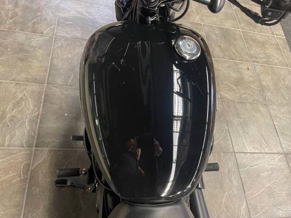 Sports an all-black two-into-one exhaust, black cast aluminum wheels, blacked-out front end with a café inspired speed screen, and a chrome medallion made of steel on the fuel tank.