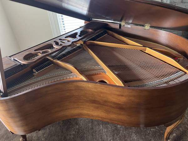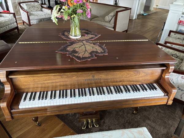This lovely Kimball baby grand piano combines classic craftsmanship with timeless beauty. Featuring a walnut satin finish, it brings warmth and sophistication to any space! This piano has graceful Queen Anne-style legs.