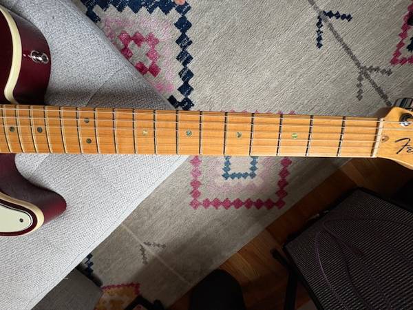Maple fretboard with abalone dots, Crimson Red. 7 different pickup configurations. All original except I added locking tuners.