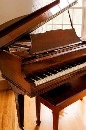 Beautiful, one-of-a-kind baby grand piano. This piano combines timeless design with lovely soft tone quality. Well cared for and ready to bring music and style to any home or studio. Ideal for musicians, collectors, or anyone seeking a statement piece.