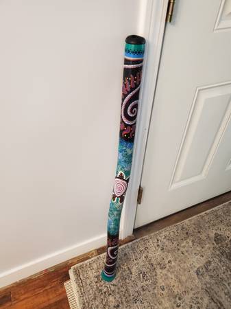 !! LEAVE A NUMBER OR NO REPLY !! CASH ONLY !! Australian Aboriginal Hand Painted Signed Didgeridoo. Beautiful coloring. 39.5" X 2.25".