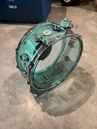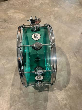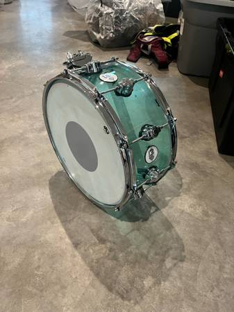 Gorgeous DW Design Series Acrylic Snare Drum - Color is Sea Glass - Size is 14 x 6.5" Brand new condition. New heads and strainer. Sounds great. Save $100 plus off buying new. I'm downsizing.