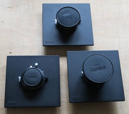 *This is located right outside New Haven, CT* Everything, incl. the heavy-gauge geared-column Gitzo tripod, in excellent functional shape and has been stored inside in good climate. Lightware case is clean. Rubber wide-angle bellows is perfect. The three lenses worked fine when last used, may need some fine attention, and are sold AS IS: Rodenstock Grandagon 1:6.8 90mm MC / Rodenstock 1:5.6 135mm MC / Schneider APO-SYMMAR 5.6 150mm MC. [I assembled this kit used 10+ yrs ago, bought the case and some accessories new.] Obviously, you can't get the Polaroid anymore. * * I will sell nothing separately, and no lower offers will be entertained.* * Includes stack of film cassettes and sun shade that mounts on front standard. Interested parties are free to inspect items composing this kit in person in Hamden (right off Merritt Pkwy) at NO obligation. Cash or cashiers check only.