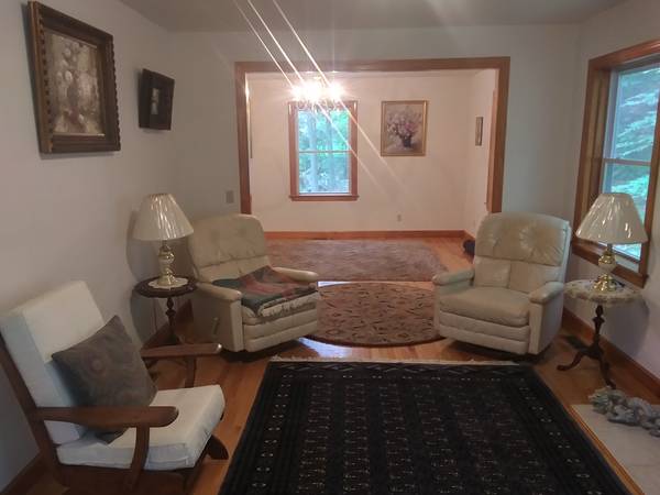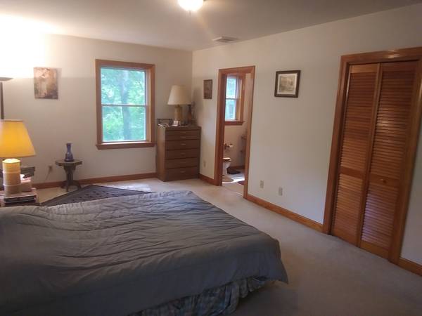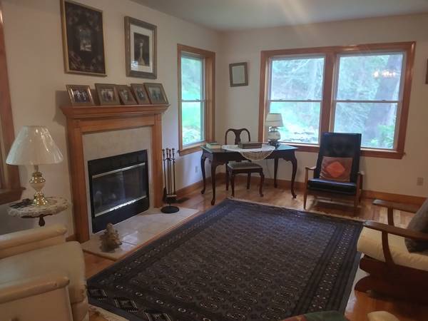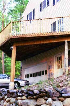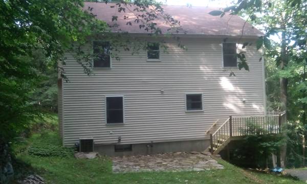 By owner. Move-in Condition. 4-5 BR 3.5 BA colonial on 1.2 acres. 1/4 mile from train & Rte 7. Panoramic views. Very private (can hardly see any other houses). Current owner is original builder and only occupant sine 2000. New Roof. 8.5' ceilings & solid pine trim throughout. Spacious BRs (MBR 12x20, other 3 are 12x12 each). MBA w jacuzzi. Mint hardwood floors in LR, DR, & Hallway. Bright Eat-in Kitchen w Granite & stainless steel. FP in LR. 30x12 wrap-around deck with 6-ft sliders to FR & KT., wraps to both front porch and back 16x12 stone patio. Oil based forced air heat (2 zones). Central Air. 2200 sf on main floors+550 sf (den/5th BR, 3rd bath, & 12x28 playroom) in finished walk-out basement. Heated 2 car garage. Full Attic. Spruce-lined driveway. Stone Walls. Will work with direct buyers or buyer's agents.