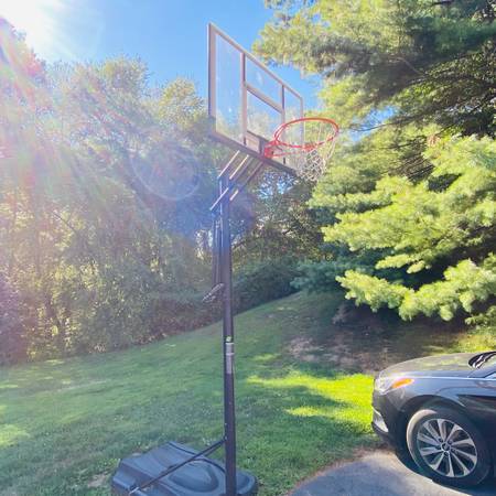 Get ready for some driveway hoops! This is a Lifetime adjustable basketball hoop with a sturdy portable base.