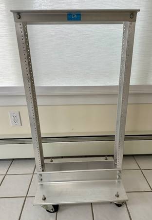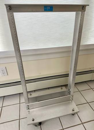 Chatsworth Products Inc (CPI) solid aluminum professional Computer Rack (or can be used for audio components). Total width 20-3/8in, total height 36in (without casters). with removable casters.