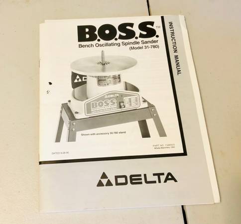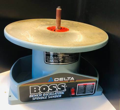 The Delta BOSS Bench Oscillating Spindle Sander Model 31-780 is a sturdy, cast-iron bench-top sander designed for smoothing curved edges, contours, and inside cuts in wood. It features an oscillating spindle that reduces heat buildup and helps prevent burning, making it ideal for clean, consistent sanding results. The machine comes with multiple sanding drums and matching inserts, along with a built-in dust port and dust bag to help manage debris. This sander is a good choice for hobbyists, woodworkers, and small-shop professionals who need a reliable tool for detailed shaping and finishing work. Its solid construction and simple operation make it especially appealing to users who value durability and ease of use over advanced features.
