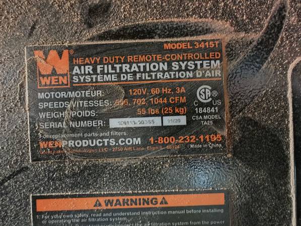 WEN 3415T 3 Speed Industrial Air Filter...works fine, manual or remote control. Comes with spare inner and outer filters. Torn paper on front of filter is from periodic vacuuming to extend its life.