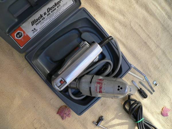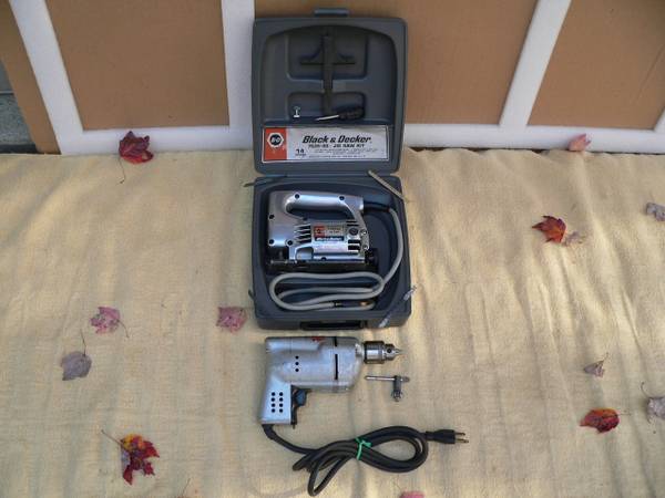 VTG B&D ALL METAL JIGSAW KIT & 3/8" DRILL IN SUPER CONDITION. The jigsaw comes in a carry case with blades and cross bar. The drill comes with key for chuck. Both work great, No funny noises. See the many pictures to see how nice. A rare find in this condition and at a great deal of only $42 for the pair. Please view photos. If I did pick up some reflections in the pictures these are not imperfections. Please note: These belonged to my mother's husband who passed. This is one of many items we will be selling now and in the future. From a clean smoke free home. Please note: We Do Not Text. Please call between 10AM and 9PM. If you are looking at this ad they are available. Ask for Jerry or Debbie. Oxford, CT. 06478