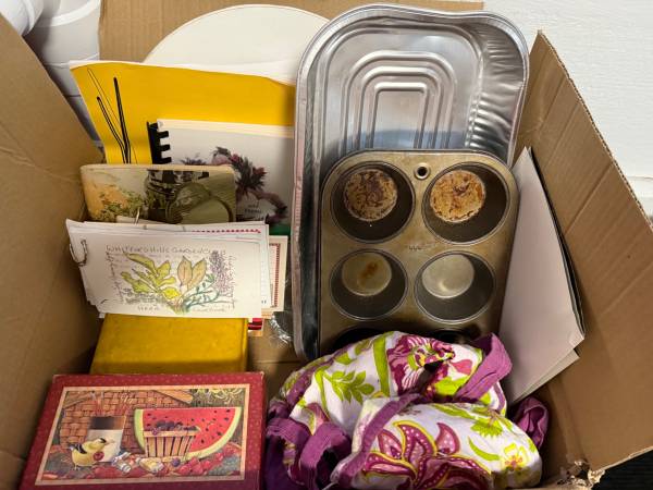 assorted baking items muffin tin, 2 recipe boxes with recipe cards, recipe booklets, apron Bags of Fall, xmas holiday and spring potpourri free for pick up in Fairfield CT