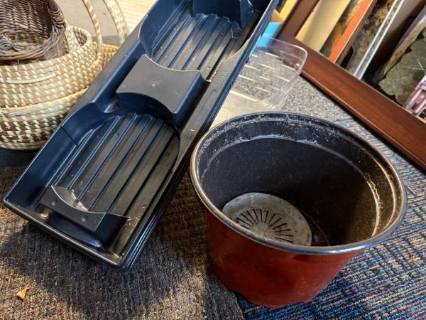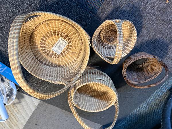 A variety of items used for garden, out door plants or indoor. Baskets which have dried out bottoms or become frayed used outdoor with plants on a rack, plastic container, plastic double container holder, clear plastic square good to use under pot but with crack along side, seeds, tie up twin and plastic, plant food drops, flower arranging vase bases- green squares, etc, free for pick up in Fairfield, CT