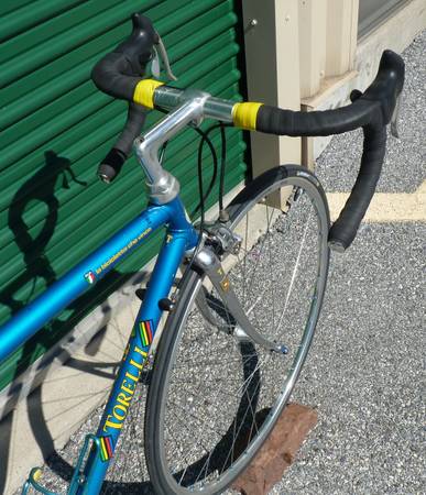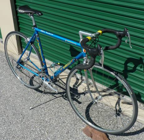 My friend Walt is cleaning out his collection and asked me to list some bikes for him, since I have connections with my business. This Columbus steel tube frameset was assembled for the company by esteemed builder Antonio Mondonico. In fact, Walt met him at a tradeshow years ago and had Mondonico sign the top tube! The bike has been built up with Campagnolo Athena 8-speed components and a set of Torelli Master wheels.