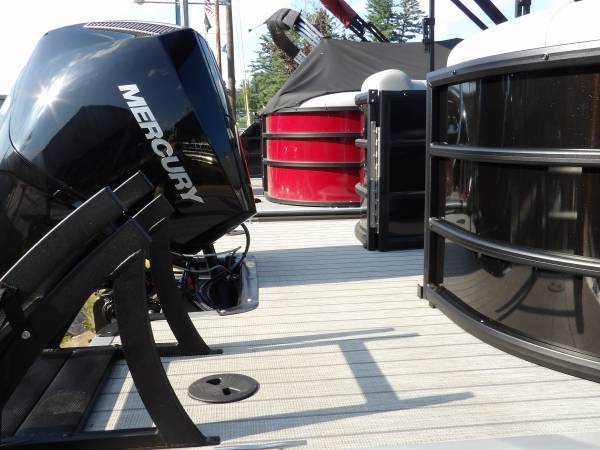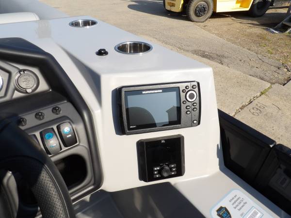 Boat comes with optional Tritoon pkg - including Alum Underskin / hyd steering and insided lifting strakes additional options included are Teak Vinyl Floor upgrade, Upgraded Docking lights, Humminbird GPS and Outside Lifting strakes for added performance!!