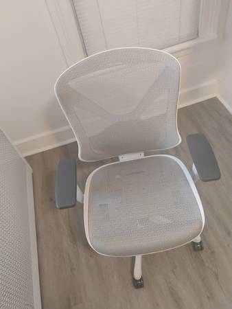 I had purchased this desk chair from a Staples store about several months ago. The chair is white and grey. It's in great condition and free! It's looking to find it a new home! The chair will have to get picked up. Near Journal Square, in Jersey City.