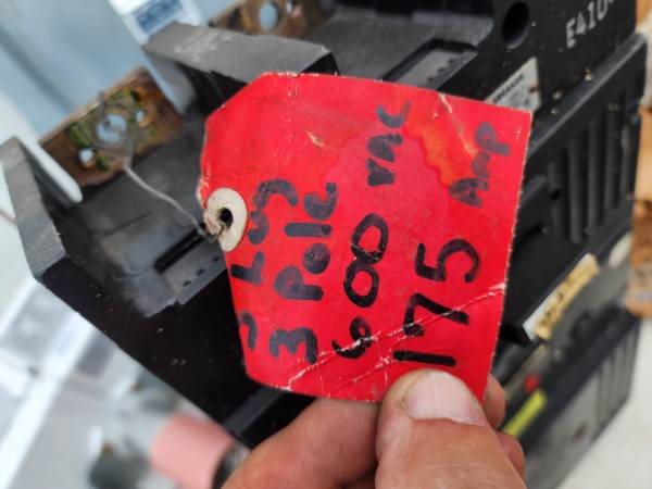 New assorted sizes Conduit Connector coupling compression, Used 200 amp safety switch, GE General Electric TB 43F 600v 175 Amp Tri Break Circuit Breaker, (4) Westinghouse A200M1CAC Model J A200 Motor Starter 110/120V Coil 3HP-5HP.
