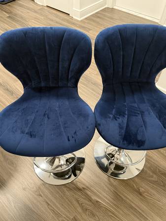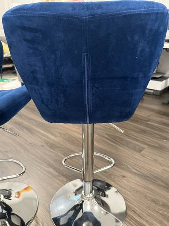 Blue velvet adjustable swivel barstools (set of 2). Used but in great condition. Local pick ups only. Located in elizabeth NJ