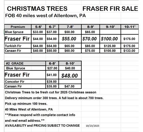 Christmas Trees Fraser Fir on SALE - $28 (& up Schuylkill Haven PA)