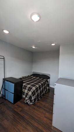 Bedroom has one closet, a drawer chest, storage (see pictures) and one window that faces west.