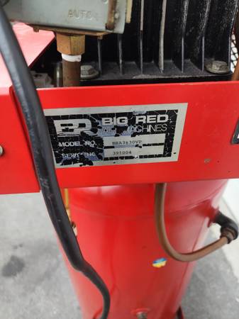 Big Red Air Machines BRA3130VS upright air compressor (Snap-On Brand), I think is a 30 gallons, in good working condition., no leaks. Pick up in Plainfield NJ