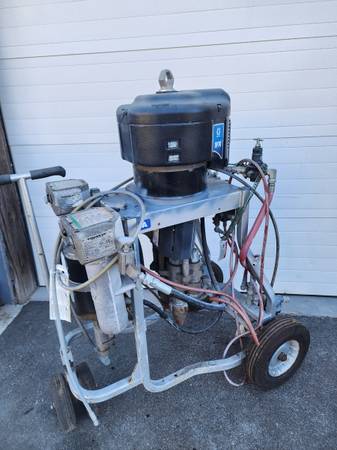 This machine is the Graco XP – 70 plural, it do coatings like acrylic, it can even do Urethane and silicone, particularly high-solids roof coatings. This machine is built to handle the high viscosity and specific application requirements of urethane & silicone. Just look up the specs and retail price on this beast.