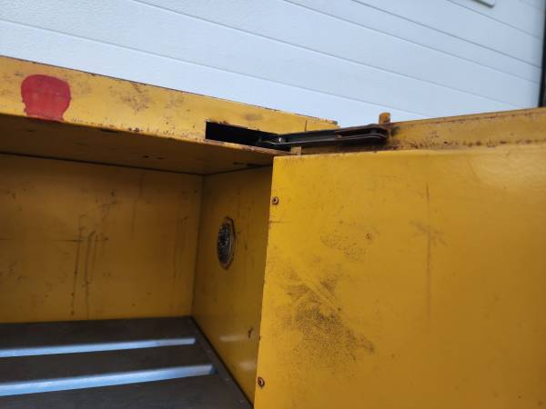 Justrite 45 Gallon Flammable Storage Safety Cabinet W/Shelves 43"W x 18"D x 65"H, in good cosmetic condition, with scratches, paint... 18-Gauge Steel, 2-Door, FM Approved, OSHA Compliant. Pickup in...