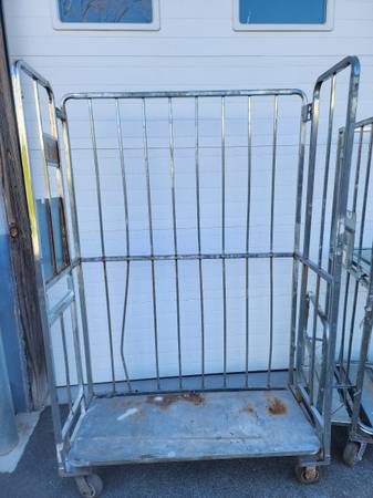 Lot of 2 Three-Shelf, Three-Sided Zinc-plated steel foldable Distribution Carts.