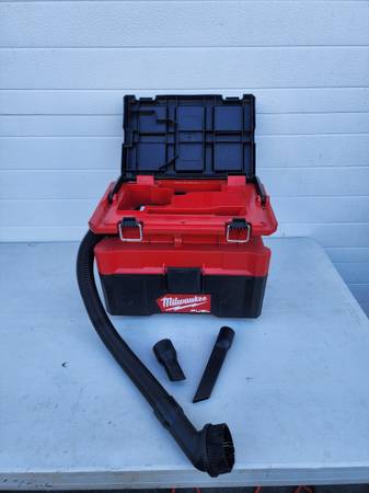 Milwaukee 0970-20 M18 Fuel Packout 2.5 Gallon Wet/Dry Vacuum with Hose, and Accessories. In good working condition, the Battery is not included. Check my other listings, I have several Vacuums...