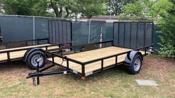 Brand new 12’ utility landscape trailer Single axle 2” coupler 2900 gvwr 1800 capacity Pressure treated wood deck Removable rear ramp gate 15” wheels and tires Ready to work