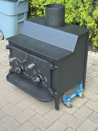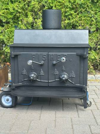 This stove is a beast — designed to heat very large homes, shops, or cabins. Fisher stoves are among the most collectible American wood stoves, and the XL is the hardest model to find.