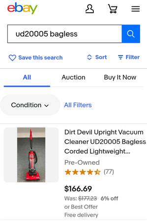 For sale is a good working, clean Dirt Devil Vacuum UD20005, only issue is the canister door hinge broke and the canister door must be held in place when locking and removing the canister, it's...