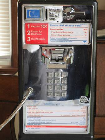 An incredible working 1970 New York Telephone Co. payphone that has a working volume control button.