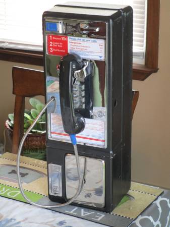 Coins are not needed to make calls, all calls are free. It rings on incoming calls. If you want to put coins in you can, they will go to the vault area. The phone has a cord with a modular plug that you can plug into a nearby jack.