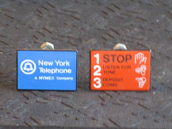 Original porcelain signs that mount at the top left corner of 1960s through 2000s payphones.