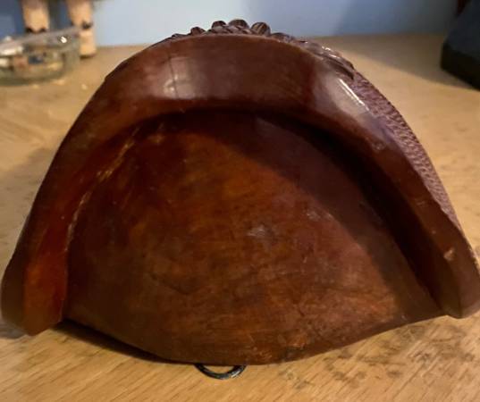 solid wood sculpture. It is very heavy. about 10 " tall Vintage smoke free and pet free home sculpture, wall hanging, vintage art, African art, eastern art, portraits, hand carved sculpture