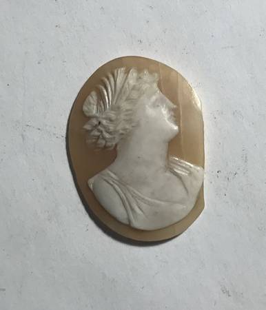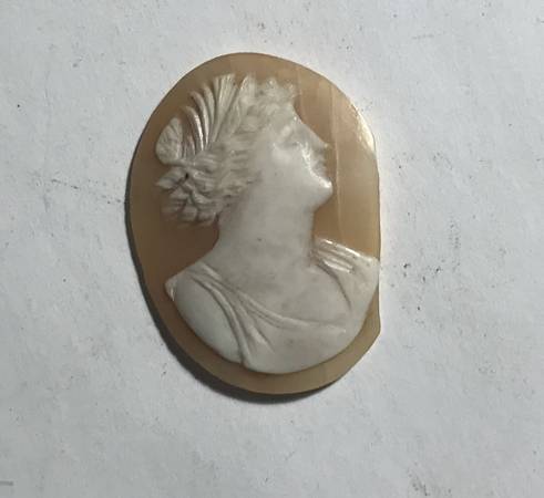 Hand carved cameo of Roman Man! Horn back, head possibly bone or ivory. Clipped on one side. Very delicate and Intricate carving.age unknown.Delivery cost extra.Price is negotiable