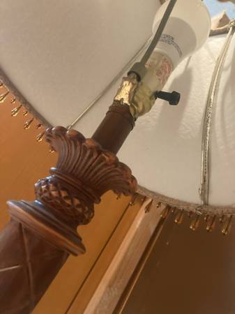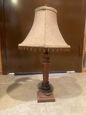 Works great 25” height I believe it’s faux wood Pick up only!! Cash only please!! Thank you