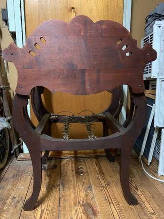 I did strip and refinish the chair to its natural wood. I was going to replace the springs with a flat seat but left as is so that you can determine how to proceed.