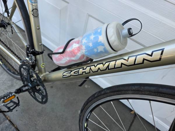 2004 Schwinn Super Sport GS Hybrid bike, tuned, trued, tested, cleaned, polished and ready to ride. Setup as a commuter bike with rear rack, saddle bag, bell, Zefal frame pump, light, multitool and water bottle.
