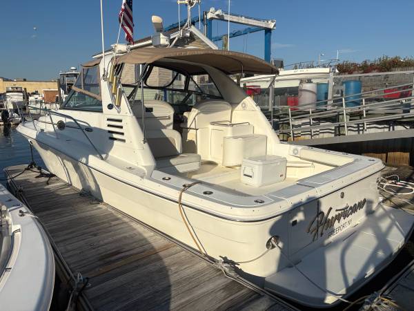 02 34’ amberjack. The last year made with 8.1 mercruiser straight inboards. Love this boat one of the widest 34’ boats with a 13.5 beam. The boat is in great shape everything works generator a/c etc. the canvas is fairly new and so are the cushions. The boat was surveyed last summer with no issues. The boat needs nothing and is still being used weekly. More pics to come soon