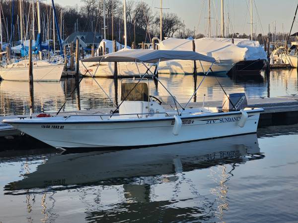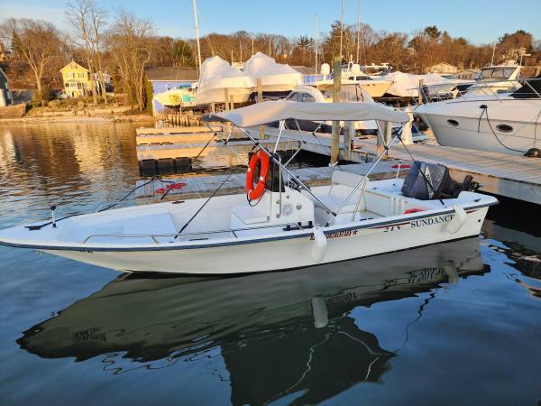For sale a 1997 21ft Sundance Center Console fishing boat. Very similar to a Carolina Skiff or Boston Whaler with a Skiff like hull. Powered by a 140hp Nissan Tohatsu 2 stroke outboard with 650 hours!