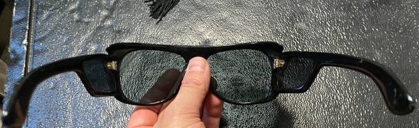 Thick heavy frame with side lenses, dark green lenses-probably real glass Excellent condition Lightly used light shelf wear Unbranded. Probably 80s