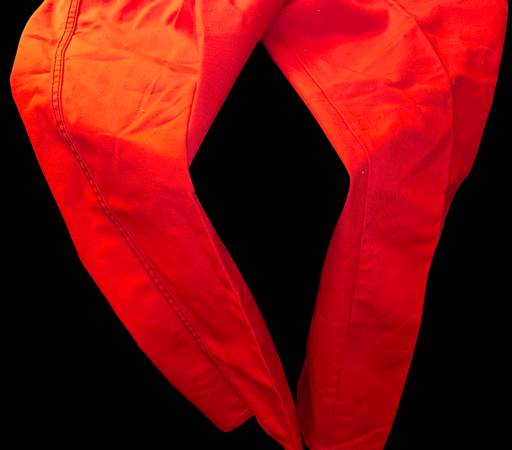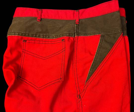 Red denim jeans. No brand listed on tag but Scovill on zipper Probably unworn Waist 36" Length roughly 40" 100% cotton